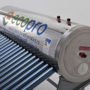 O aquecedor solar a vácuo acoplado da Linha Gold Ecopro é um equipamento importado, projetado para funcionar de forma otimizada nas condições climáticas do Brasil. Ele possui uma segunda saída de respiro que alivia a pressão positiva e previne a pressão negativa, aumentando a segurança e a vida útil do sistema. Com certificação INMETRO e acabamento em inox, está disponível em diversos volumes para atender diferentes demandas e possui uma estrutura flexível que se adapta a qualquer tipo de telhado. As conexões de água são soldadas, sem flanges, o que aumenta a resistência e reduz o risco de vazamentos.