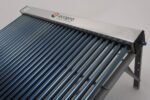 O aquecedor solar a vácuo modular, classificado como “A” no Inmetro, possui 30 tubos de 1800 mm de comprimento e 58 mm de diâmetro. O corpo interno é feito de aço inoxidável 304 ou 316, enquanto o corpo externo é de alumínio, garantindo durabilidade e resistência. As dimensões da estrutura são 2335 mm x 1880 mm x 760 mm com inclinação e 2335 mm x 2000 mm sem inclinação. O manifold mede 2455 mm. Com água, o peso total do sistema é de 179 kg com inclinação e 173 kg sem inclinação.
